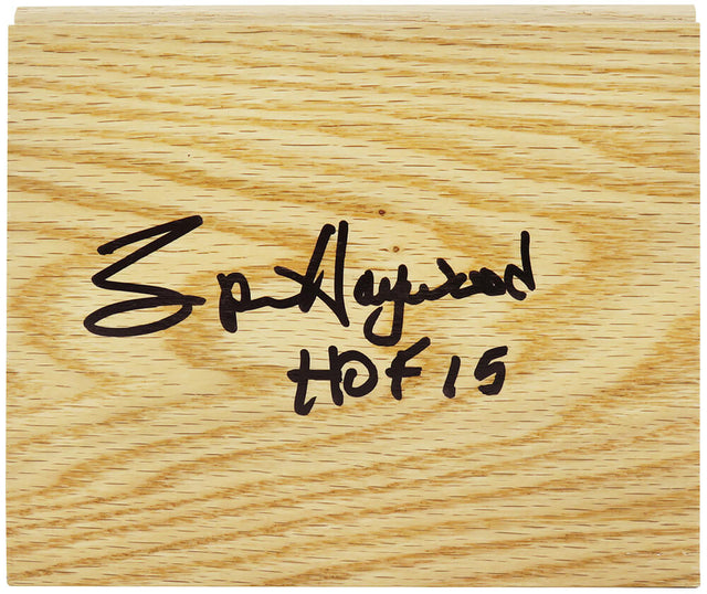 Own a piece of basketball history with this Spencer Haywood signed 56 floor piece, complete with a "HOF 15" inscription. Haywood, a Basketball Hall of Famer, played a pivotal role in shaping the NBA, known for his dominant performances and groundbreaking impact on player eligibility rules.