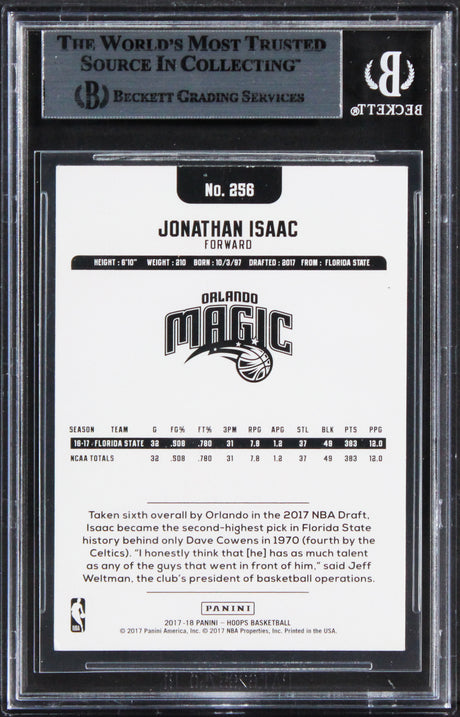 Very low stock (1 unit)$2,379Unit price /Unavailable Magic Jonathan Isaac Authentic Signed 2017 Hoops #256 Card BAS Slabbed