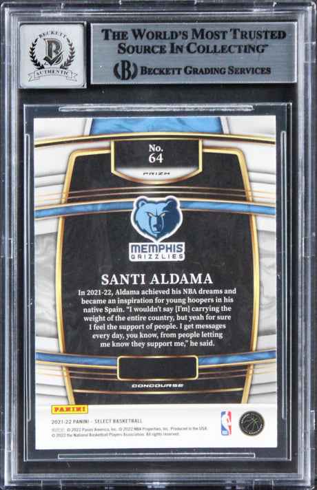 Very low stock (1 unit)$239Unit price /Unavailable Grizzlies Santi Aldama Signed 2021 Select B #64 Rookie Card Auto 10! BAS Slabbed
