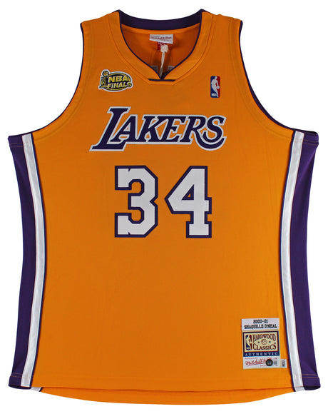 Shaquille O'Neal "HOF 16" Signed Yellow M&N 2000-01 HWC Authentic Jersey BAS Wit