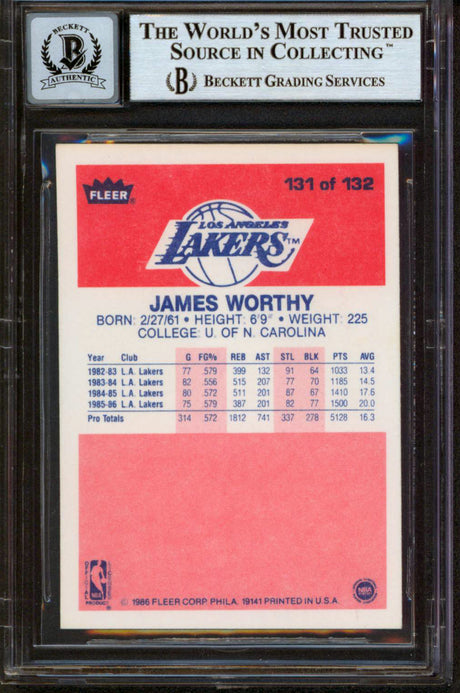 Lakers James Worthy HOF 2003 Signed 1986 Fleer #131 Rookie Card Auto 10 BAS Slab