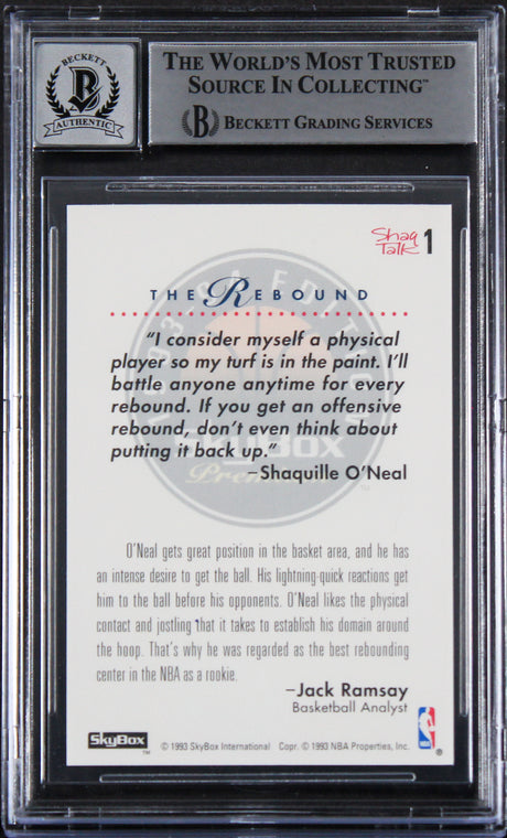 Magic Shaquille O'Neal Signed 1993 Skybox Premium #1 Card Auto 10! BAS Slabbed