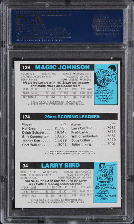 Bird, Erving & Magic Signed 1980 Topps Rookie Card Autos Graded 10! PSA Slabbed