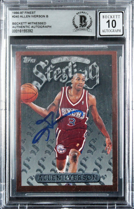 76ers Allen Iverson Signed 1996 Finest #240 Rookie Card Auto 10! BAS Slabbed