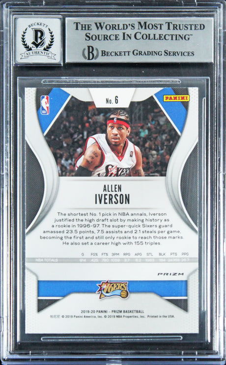 76ers Allen Iverson Signed 2019 Panini Prizm #6 Card Auto 10! BAS Slabbed