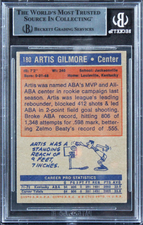 Bulls Artis Gilmore "HOF 2011" Signed 1972 Topps #180 Rookie Card BAS Slabbed