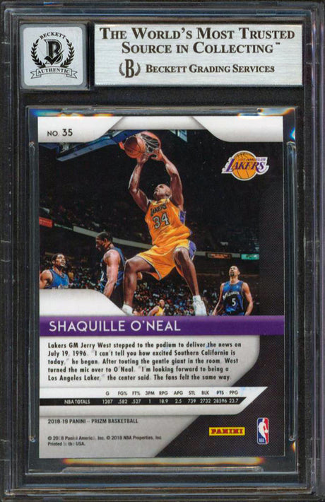 Lakers Shaquille O'Neal Signed 2018 Panini Prizm #35 Card Auto Grade 10 BAS Slab