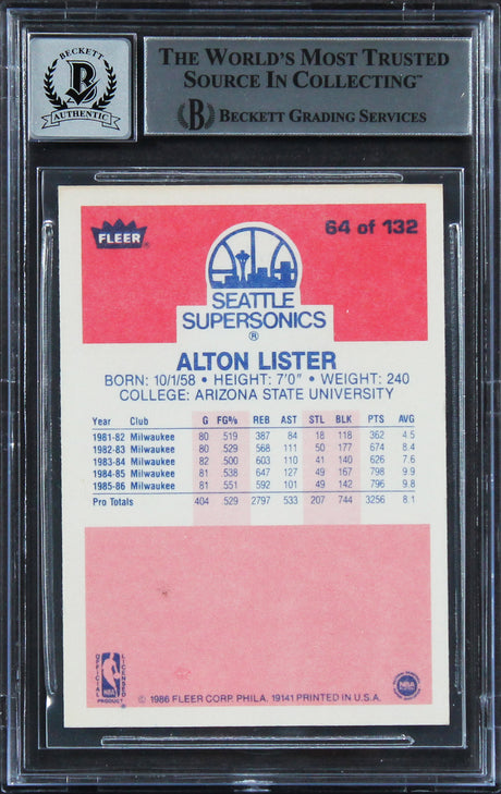 Bucks Alton Lister Signed 1986 Fleer #64 Card Auto 10! BAS Slabbed Rare!