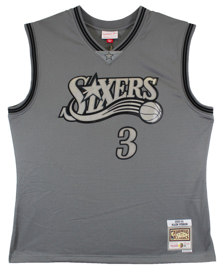 76ers Allen Iverson Authentic Signed Grey M&N HWC Swingman Jersey BAS Witnessed