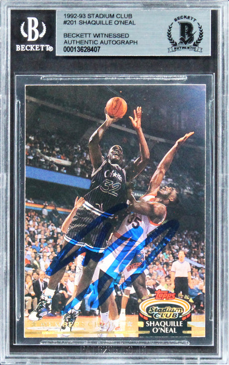 Magic Shaquille O'Neal Signed 1992 Stadium Club #201 Rookie Card BAS Slabbed