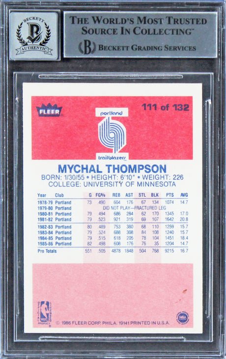 Mychal Thompson "1978 #1 Pick" Signed 1986 Fleer #111 Card Auto 10! BAS Slabbed