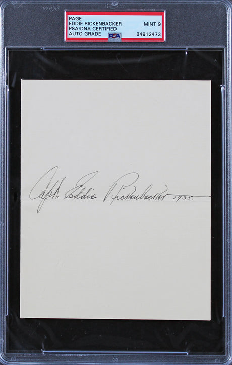 Eddie Rickenbacker "Capt, 1935" Signed 5x6.25 Album Page Auto 9! PSA Slabbed