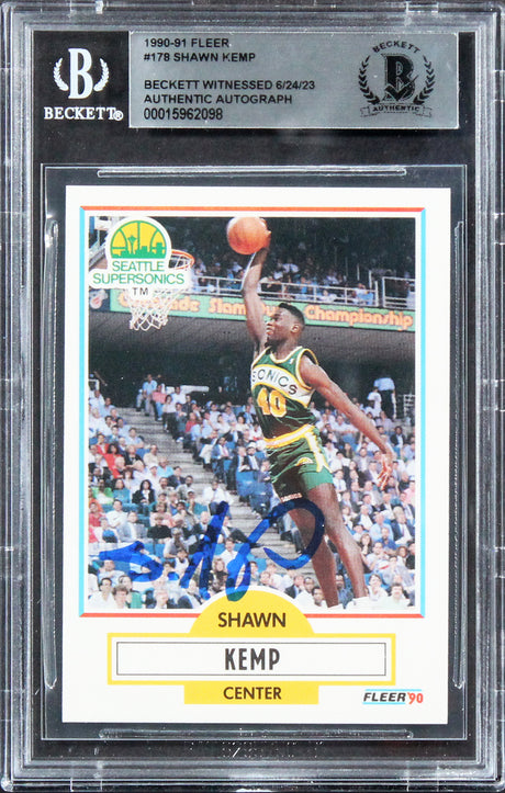 Very low stock (1 unit)$109Unit price /Unavailable Sonics Shawn Kemp Authentic Signed 1990 Fleer #178 Rookie Card BAS Slabbed