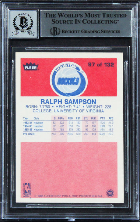 Rockets Ralph Sampson "HOF 12" Signed 1986 Fleer #97 Card Auto 10! BAS Slabbed