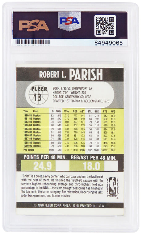 - Ships FreeRobert Parish Signed Boston Celtics 1990-91 Fleer Basketball Card #13 w/HOF'03 - (PSA Encapsulated) Low stock (4 units)$109Unit price /Unavailable
