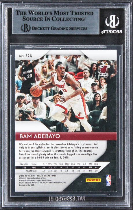 - Heat Bam Adebayo Authentic Signed 2018 Panini Prizm #226 Card BAS Slabbed Very low stock (1 unit)$89Unit price /Unavailable