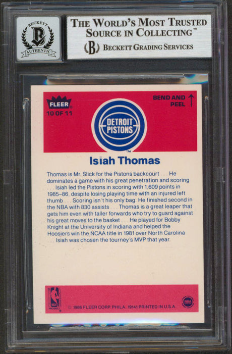 Pistons Isiah Thomas Signed 1986 Fleer Stickers #10 Card Auto 10! BAS Slabbed