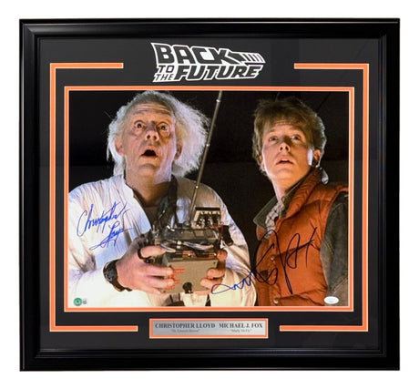 Michael J Fox & Lloyd Signed Framed 16x20 Back to the Future Remote Photo BASJSA
