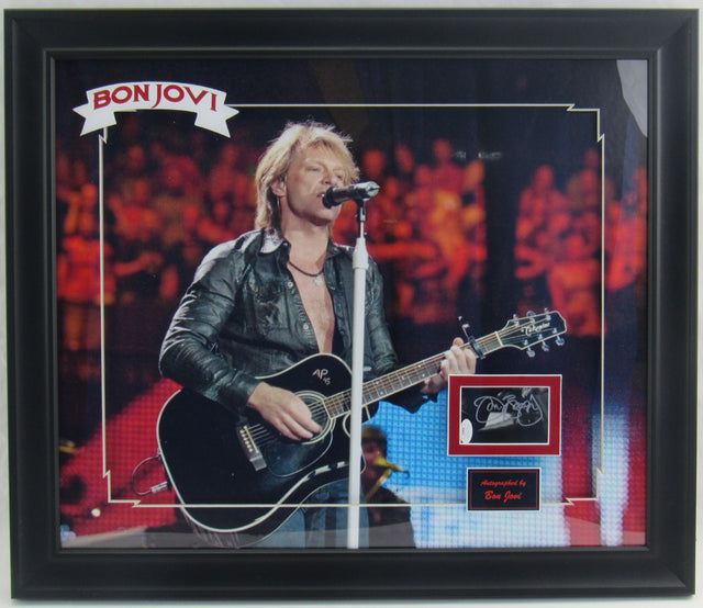 Jon Bon Jovi Signed Auto Autograph Framed 3x4 Cut Signature w/ 16x20 Photo JSA COA