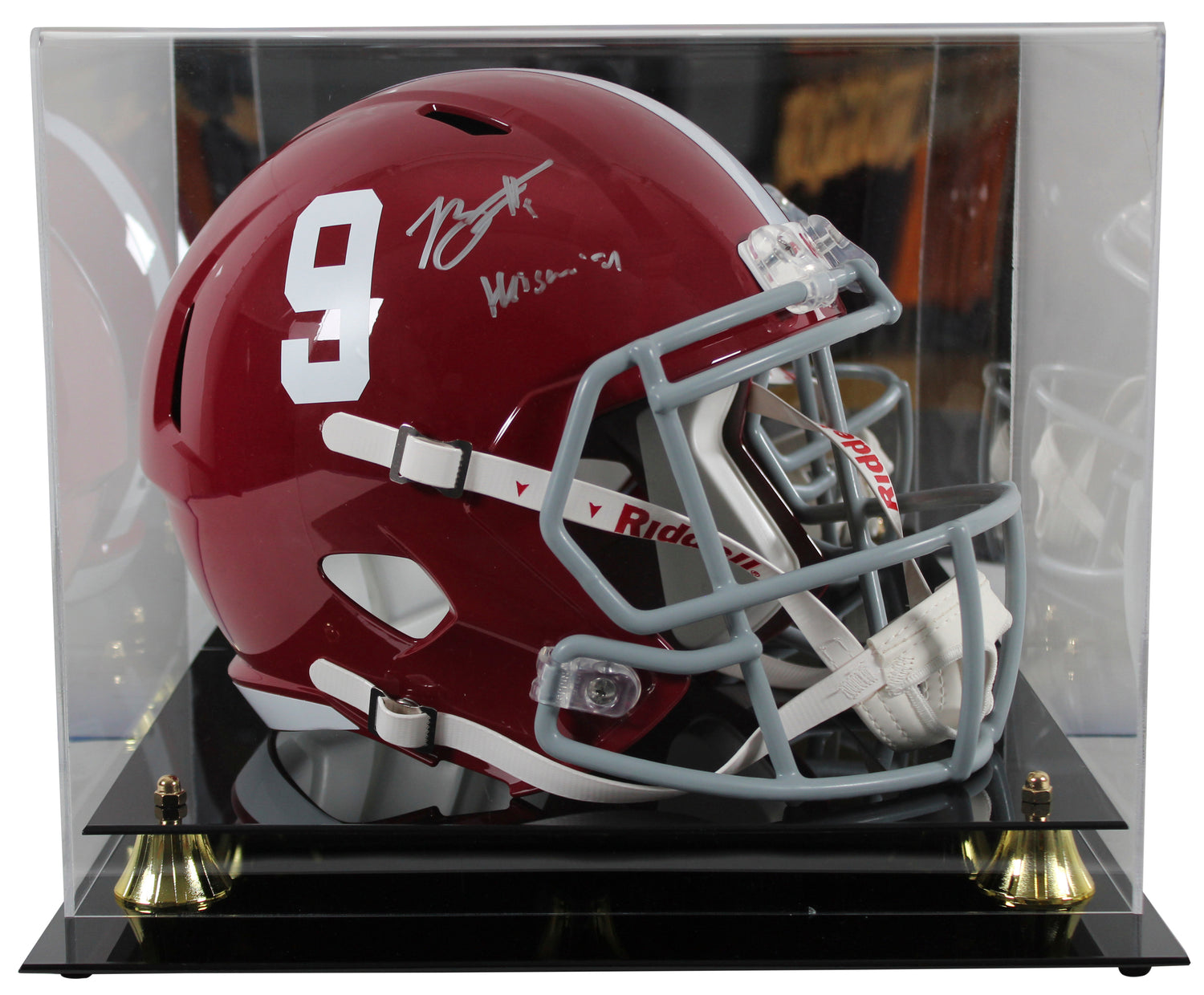 Elevate your sports memorabilia collection with this Bryce Young Autographed Full-Size Speed Replica Helmet, featuring a silver signature and the exclusive inscription "Heisman 21." A must-have for Alabama Crimson Tide fans, this piece comes with a UV-mirrored back acrylic display case, making it the perfect showcase for any dedicated collector.