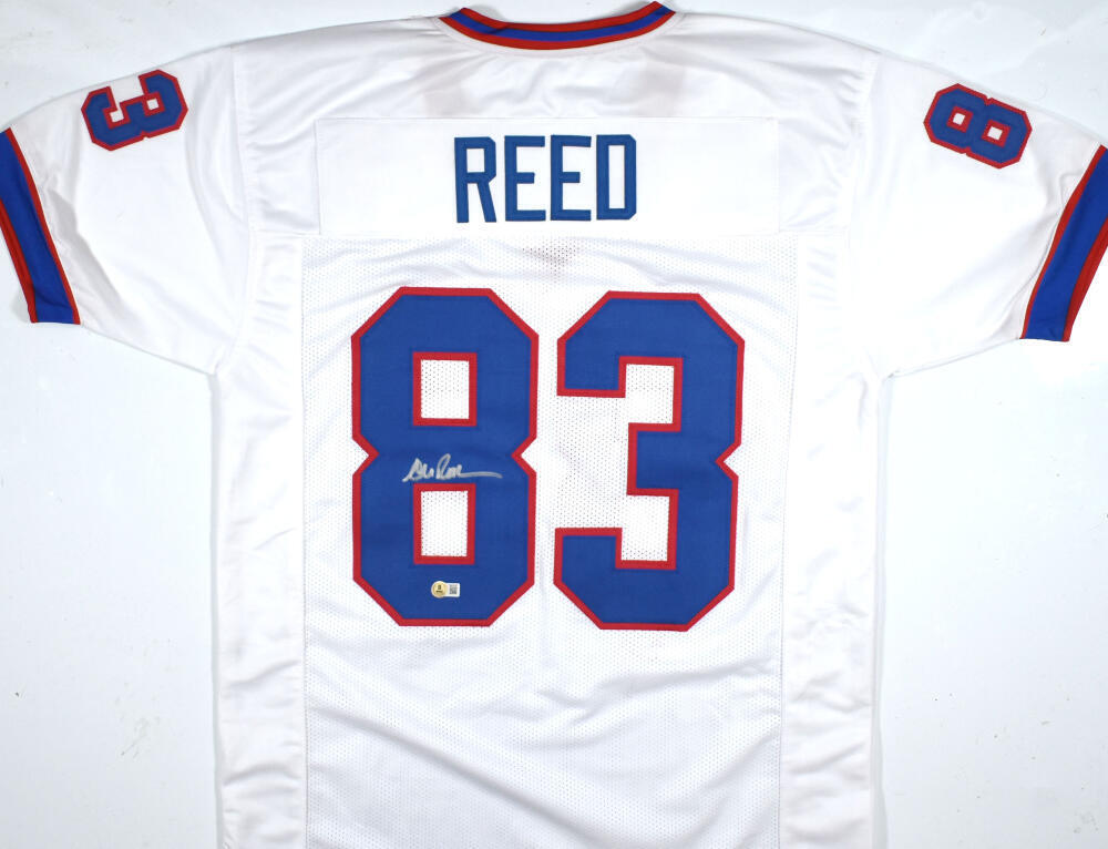Own a piece of football history with this Andre Reed Autographed Custom Jersey! This high-quality, authentic-style jersey (non-name brand) is a must-have for Buffalo Bills fans and memorabilia collectors. Please note: This is not an NFL-licensed jersey—it has no tags, logos, or emblems, but features professionally stitched letters and numbers.