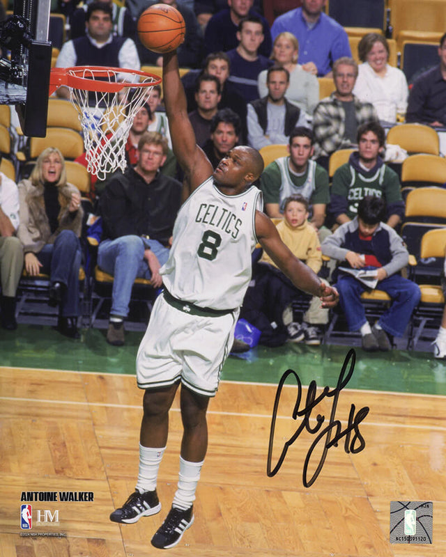 Own a piece of Boston Celtics history with this Antoine Walker signed 8x10 dunking action photo—a must-have for any true basketball fan or memorabilia collector. Walker, a pivotal player for the Celtics in the late '90s and early 2000s, was known for his scoring ability, leadership, and dynamic playstyle. This autographed photo captures him in mid-air, delivering the electrifying moves that made him a standout figure in Celtics history.