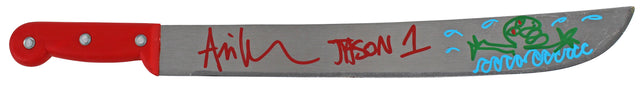 This Autographed Machete w/ Red Handle w/ Sketch with the inscription of "Jason 1" has been Personally Signed by Ari Lehman of Friday The 13th. This item is 100% Authentic to include a hologram by Beckett Authentication Services. This item will come with the new Beckett Authentication hologram that has a scannable QR code rather than the traditional COA. If you would like to have a COA, you are welcome to reach out to Beckett for a printed certification once you receive your item. This is a BAS Witnessed Protection Program item which means a Beckett Authentication Service representative was present when this item was being signed. We conducted an autograph signing with Ari Lehman where multiples of the same item were signed. While the photographs are representative of this item, the size, placement and strength of the signature may vary. Each item is hand signed, therefore, each autograph is unique.