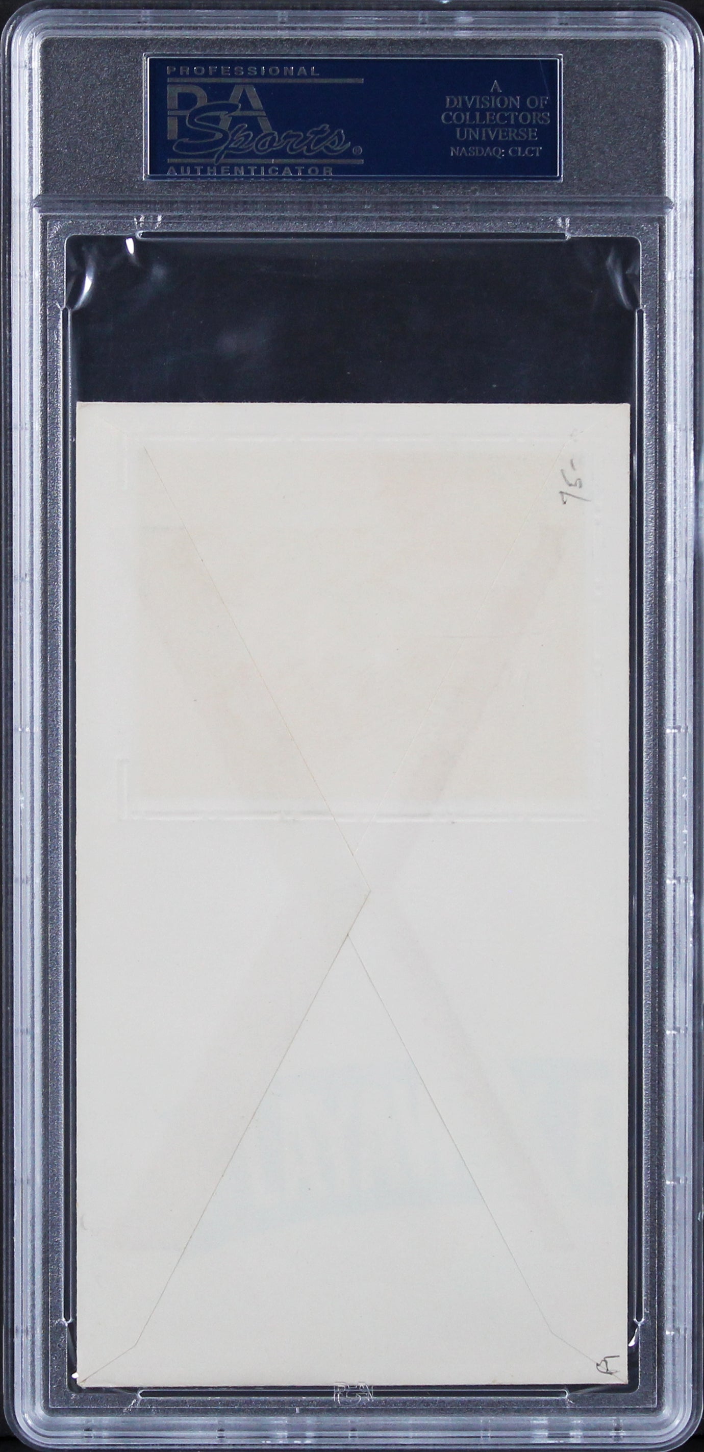 This Autographed Postmarked April 7, 1977 3.5x6.5 First Day Cover Envelope has been personally signed by Arnold Palmer, one of golf’s greatest legends. A true collector’s piece, this item is 100% authentic, professionally slabbed and authenticated by PSA/DNA, ensuring its value and legitimacy.