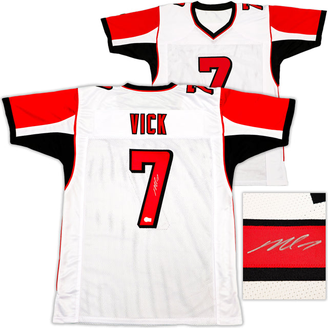 Atlanta Falcons Michael Vick Autographed White Jersey Beckett BAS Witness Stock #230183