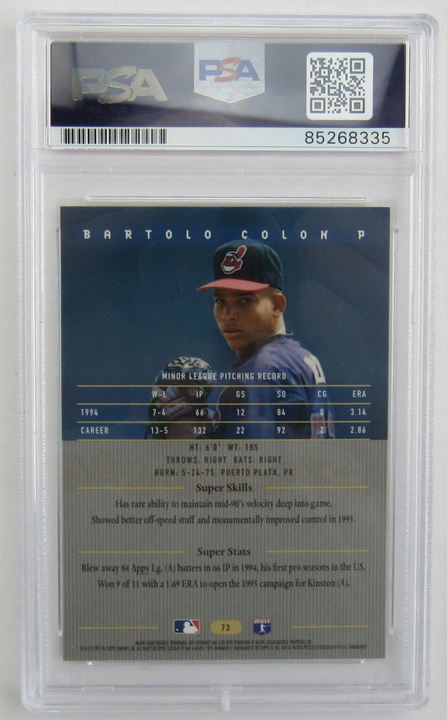 Own a piece of baseball history with this Bartolo Colón Signed 1995 Topps Baseball Card, encapsulated and authenticated by PSA/DNA. This rare collectible celebrates the early career of the legendary pitcher, who made his MLB debut in 1997 and went on to become a Cy Young Award winner and four-time All-Star.