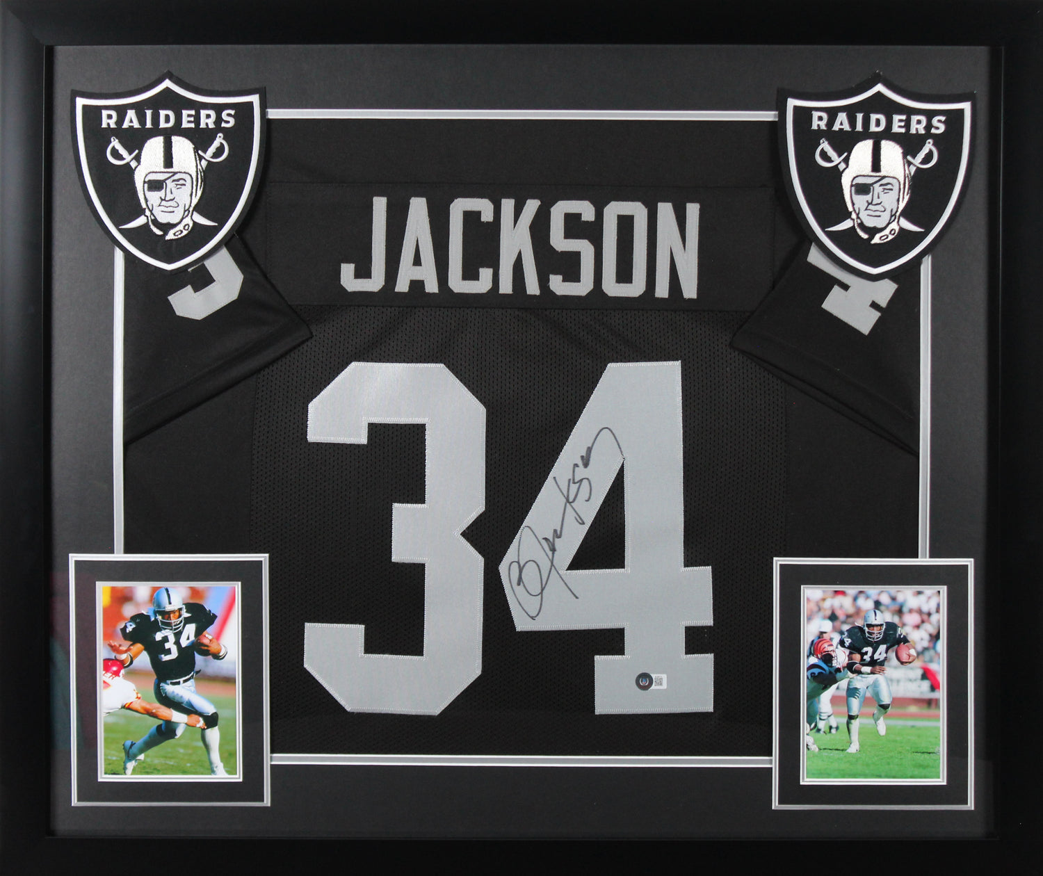 This Autographed Black Pro Style Framed Jersey has been personally signed by Bo Jackson of the Oakland Raiders, making it a must-have for Raiders fans and sports memorabilia collectors. A true legend on both the football and baseball fields, Jackson’s impact on the game is undeniable, and this signed jersey serves as a tribute to his incredible career. Each jersey is 100% authentic, featuring an official Beckett Authentication Services (BAS) hologram with a scannable QR code for verification. Please note that Beckett no longer provides serial-numbered COA cards—this BAS sticker is your complete authentication assurance. ### Product Features:
