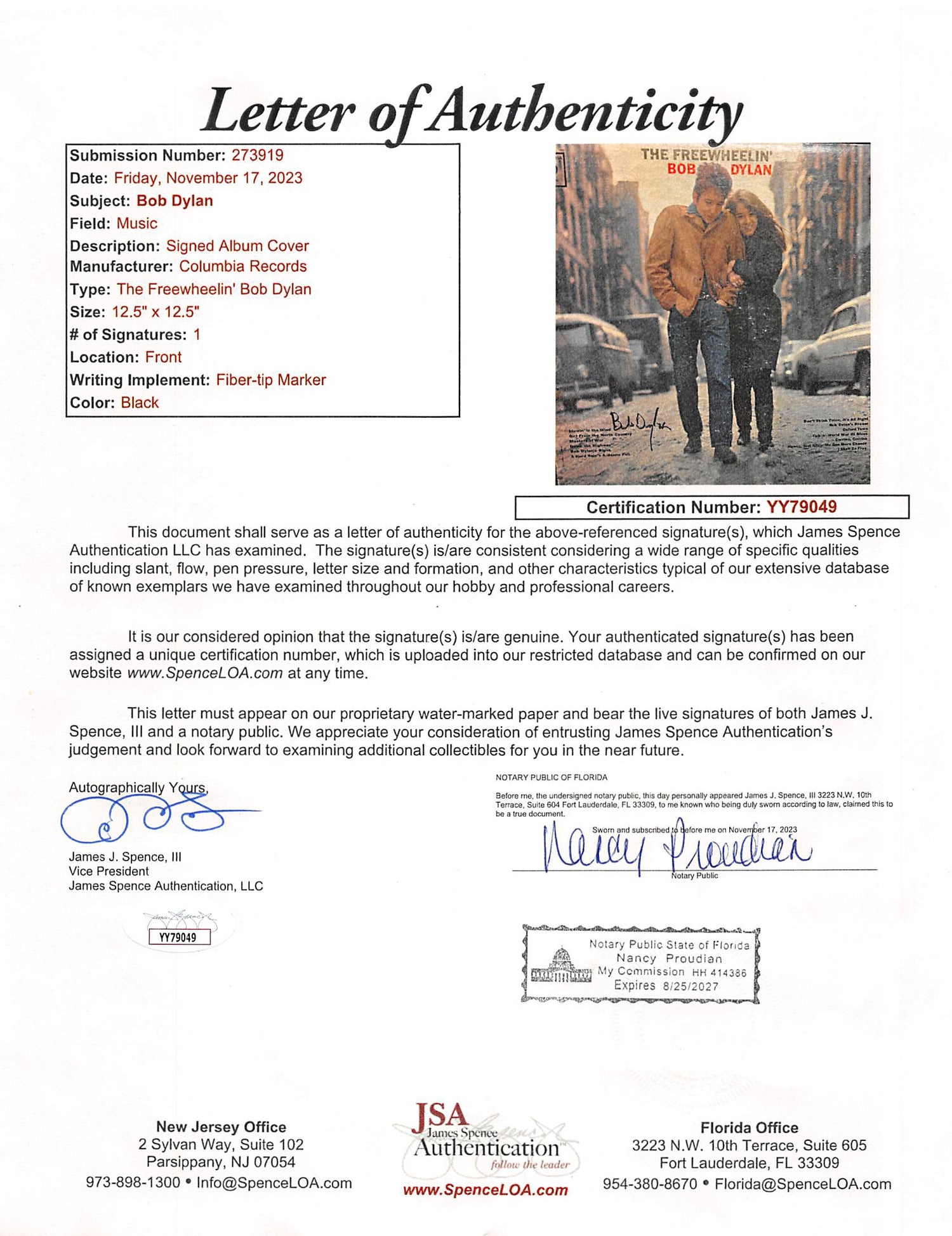 Bob Dylan Signed The Freewheelin' Bob Dylan Album Cover W/ Vinyl JSA #YY79049 is backordered and will ship as soon as it is back in stock.