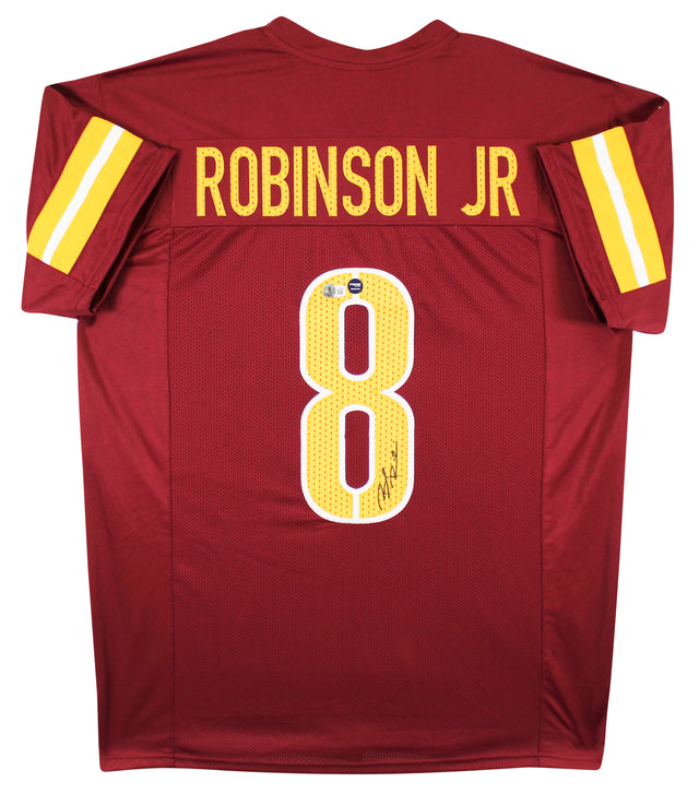 Elevate your sports memorabilia collection with this Autographed Maroon Pro Style Jersey, personally signed by Brian Robinson Jr. of the Washington Commanders. A must-have for dedicated fans and collectors, this jersey is 100% authentic, verified by Beckett Authentication Services (BAS).