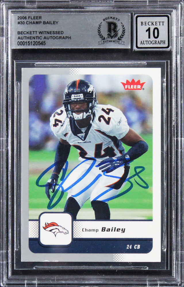 Broncos Champ Bailey Authentic Signed 2006 Fleer #30 Card Auto 10! BAS Slabbed