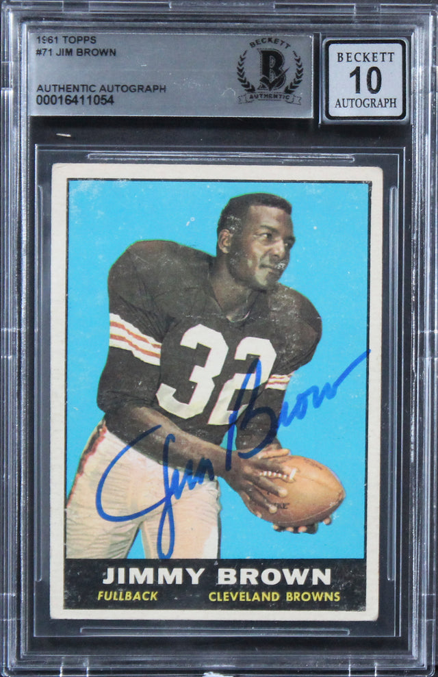 Browns Jim Brown Authentic Signed 1961 Topps #71 Card Auto 10! BAS Slabbed