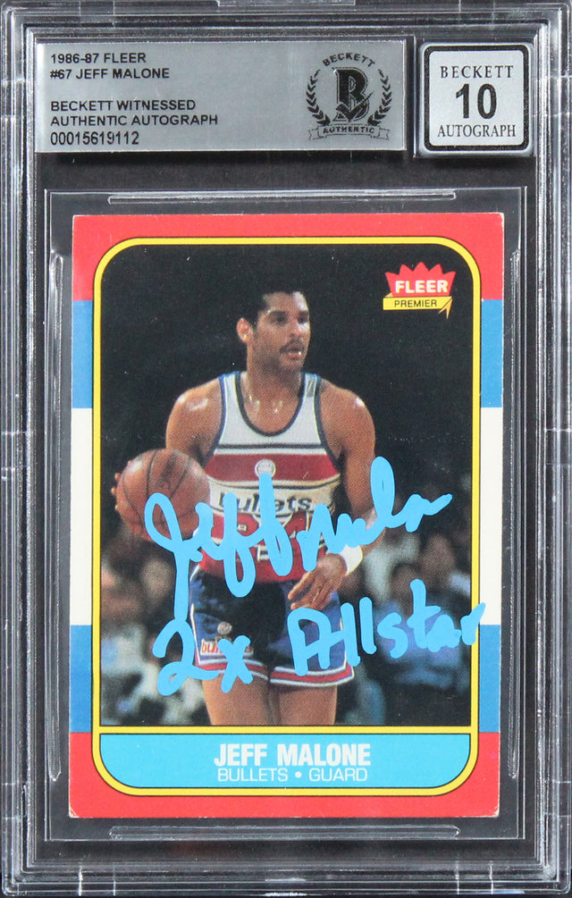 Bullets Jeff Malone "2x All Star" Signed 1986 Fleer #67 Card Auto 10 BAS Slabbed