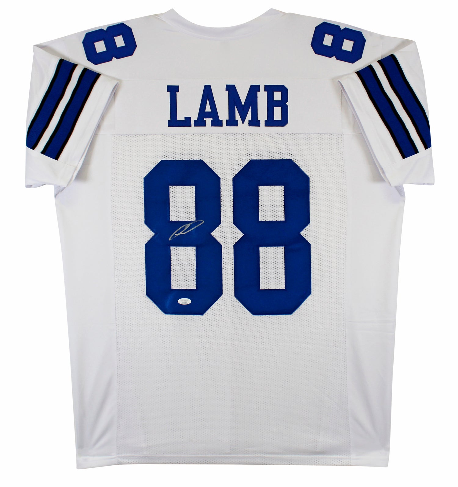 Own a piece of NFL history with this Autographed White Pro Style Jersey, personally signed by CeeDee Lamb of the Dallas Cowboys. A rising star in the league, Lamb has become a fan favorite with his electrifying plays and game-changing performances. This item is 100% authentic and includes a Certificate of Authenticity (COA) / hologram by JSA, ensuring its legitimacy for collectors and Cowboys fans alike.