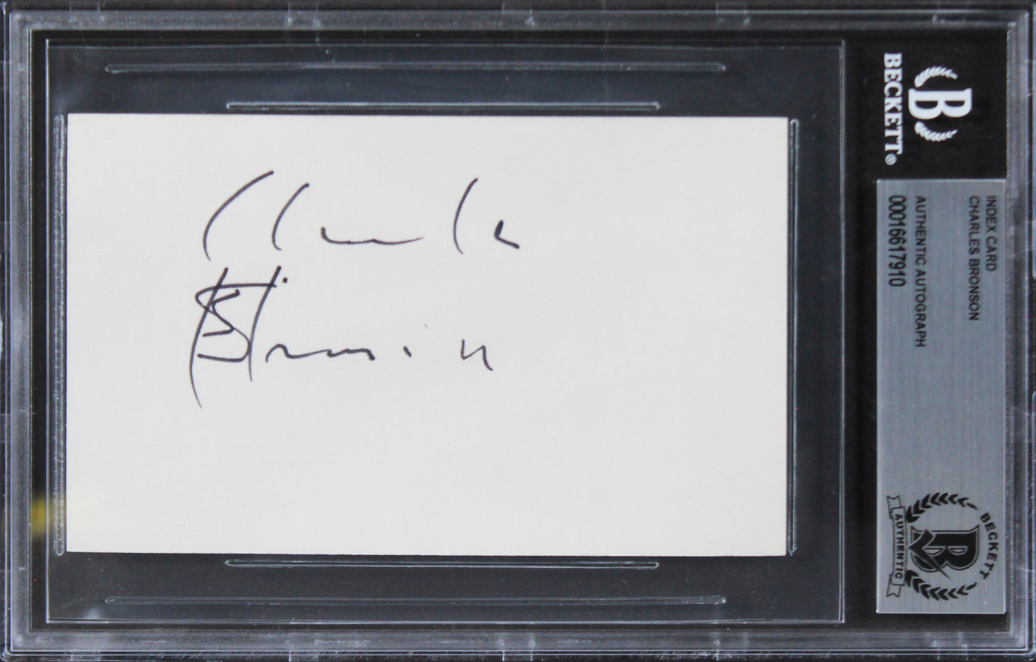 Charles Bronson The Great Escape Authentic Signed 3x5 Index Card BAS Slabbed 2