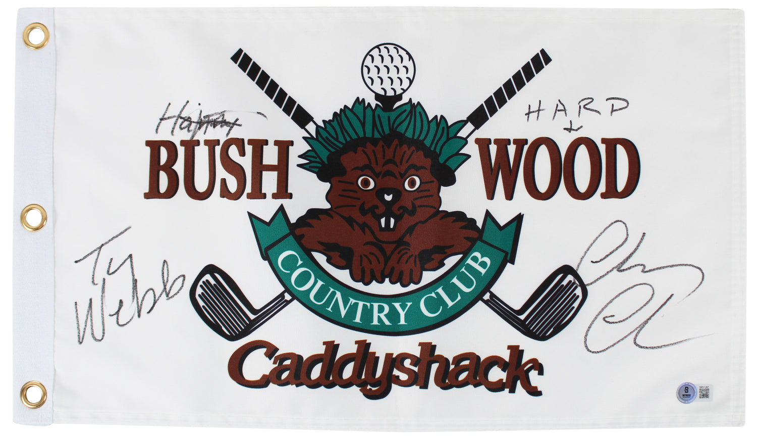Chevy Chase Caddyshack "2x Insc" Signed Bushwood Country Club Flag BAS #1W311287