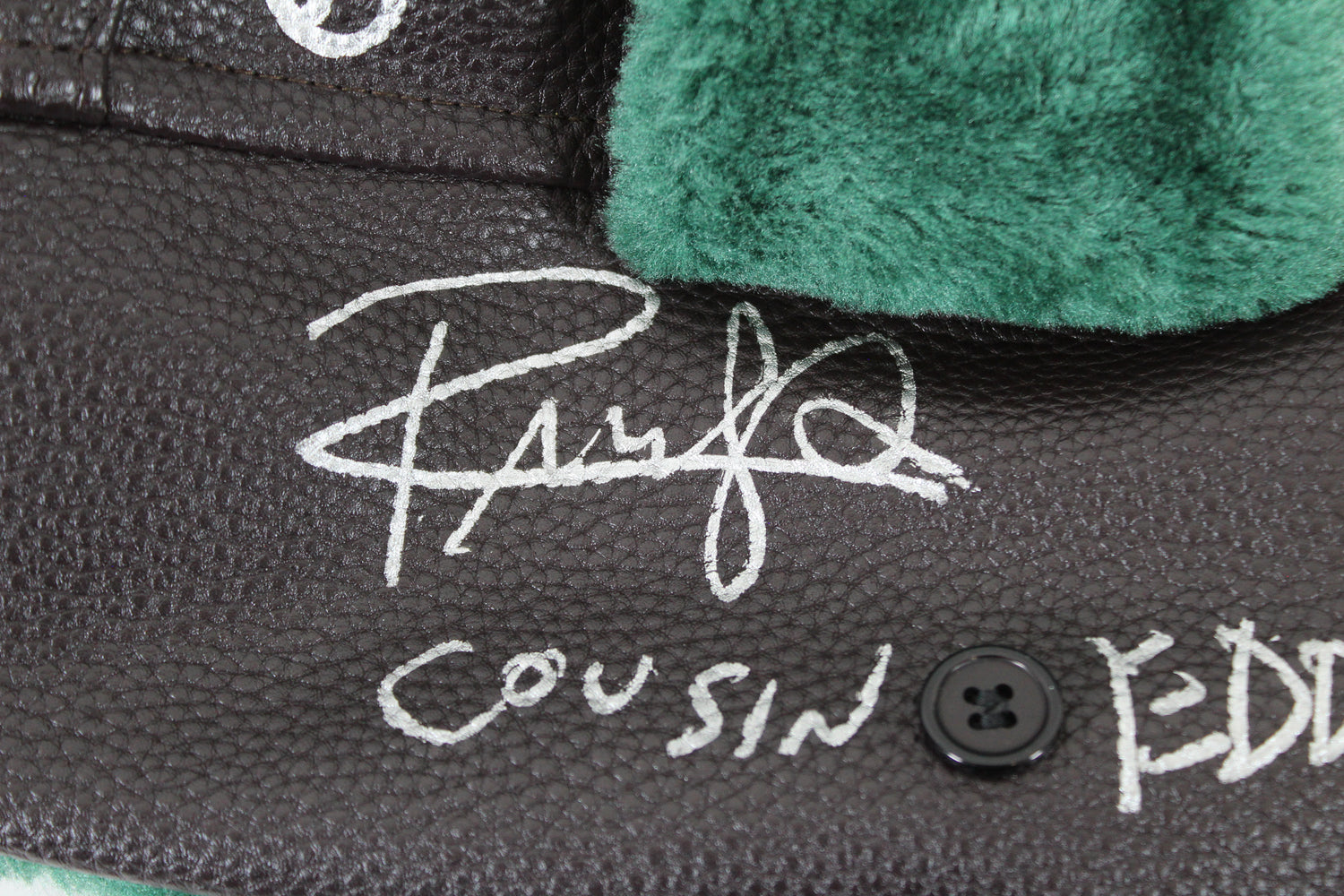 Own a piece of holiday movie history with this autographed hat, signed by Chevy Chase and Randy Quaid, the legendary stars of National Lampoon's Christmas Vacation. This exclusive collectible features their signatures along with the iconic inscription: "Cousin Eddie, S'S Full (Quaid); Clark (Chase)", making it a must-have for fans of the classic holiday comedy.