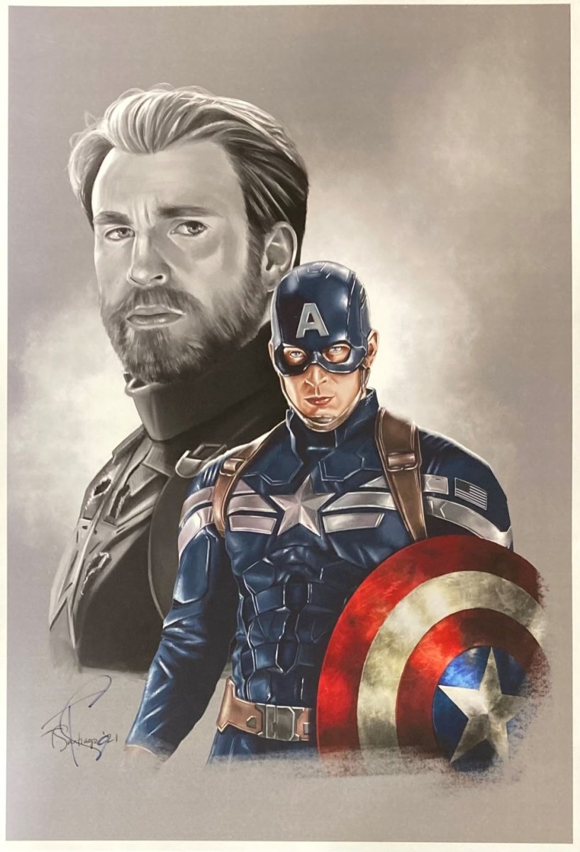 Own a stunning piece of Marvel history with this Chris Evans 13x19 Captain America lithograph, featuring artwork by renowned artist Tony Santiago. This collectible lithograph is hand-signed by Santiago and is an essential addition for any comic book, superhero, or pop culture enthusiast.