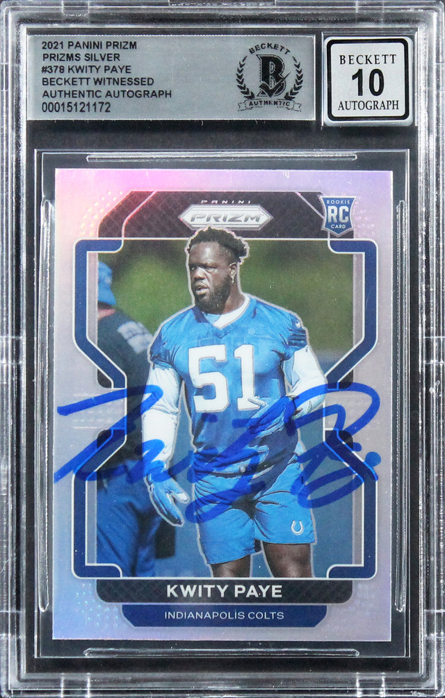 Colts Kwity Paye Signed 2021 Panini Prizm Silver #379 RC Auto 10! BAS Slabbed is backordered and will ship as soon as it is back in stock.