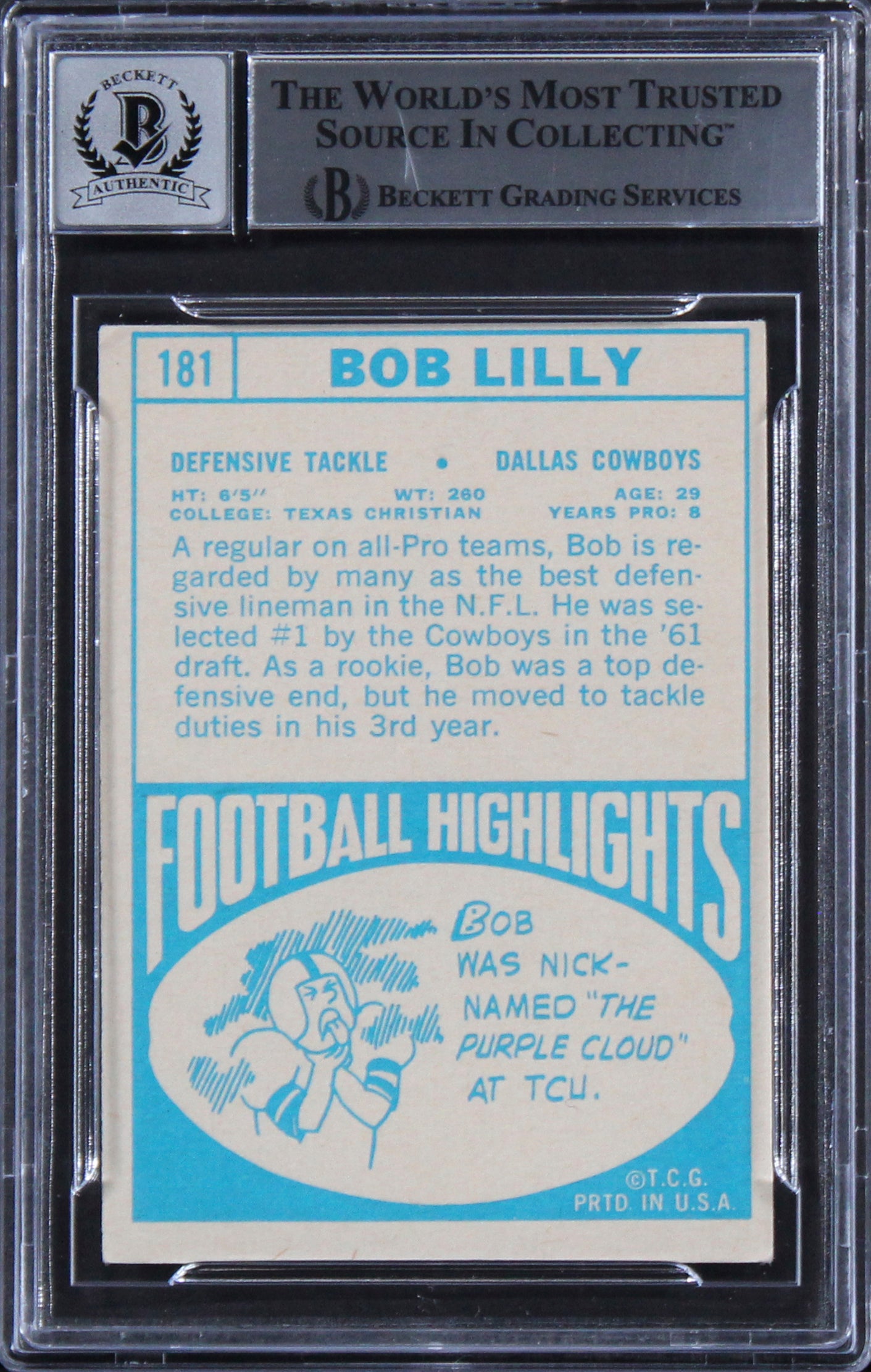 Cowboys Bob Lilly "2x Insc." Signed 1968 Topps #181 Card Auto 10! BAS Slabbed is backordered and will ship as soon as it is back in stock.