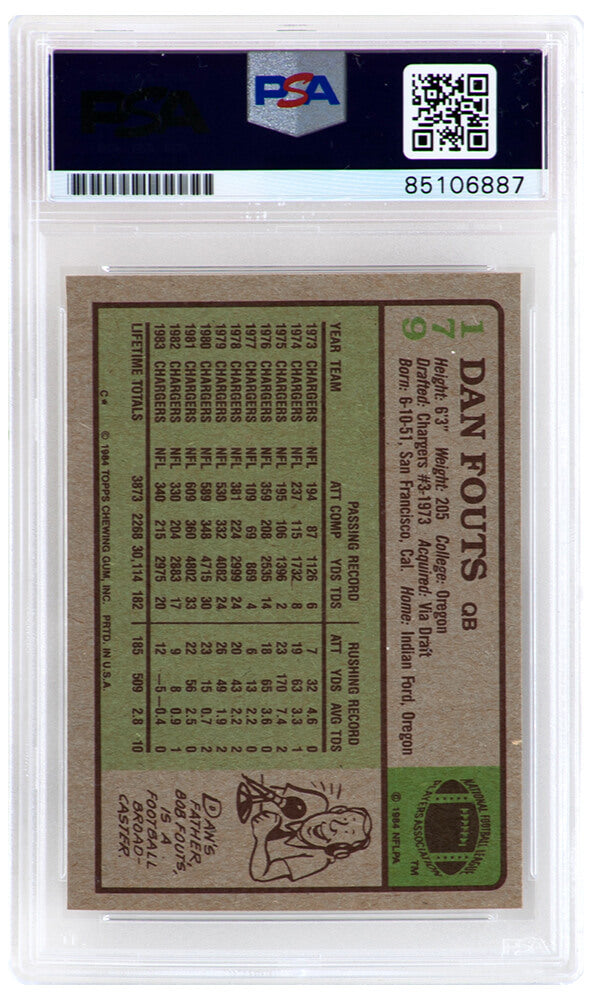 Dan Fouts Signed Chargers 1984 Topps Football Trading Card #179 - (PSA Encapsulated)