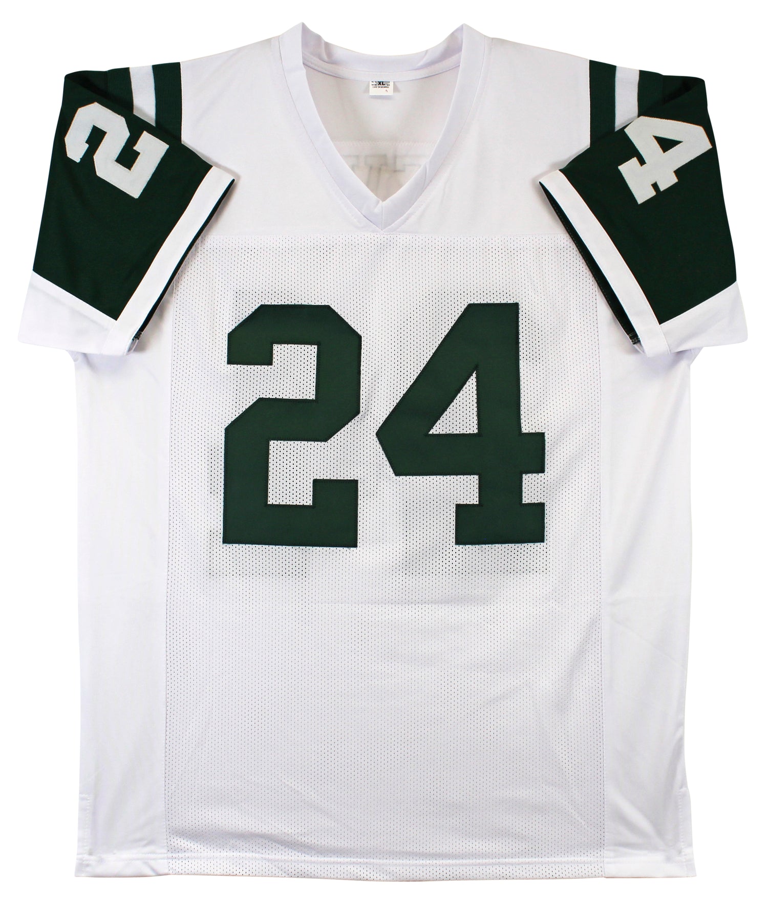 Own a piece of New York Jets history with this autographed White Pro Style Jersey, personally signed by legendary cornerback Darrelle Revis. A key figure in the Jets’ defense, Revis was known for his lockdown coverage, earning the nickname "Revis Island." Whether you're a dedicated fan or a serious collector, this signed jersey is a must-have addition to your memorabilia collection.