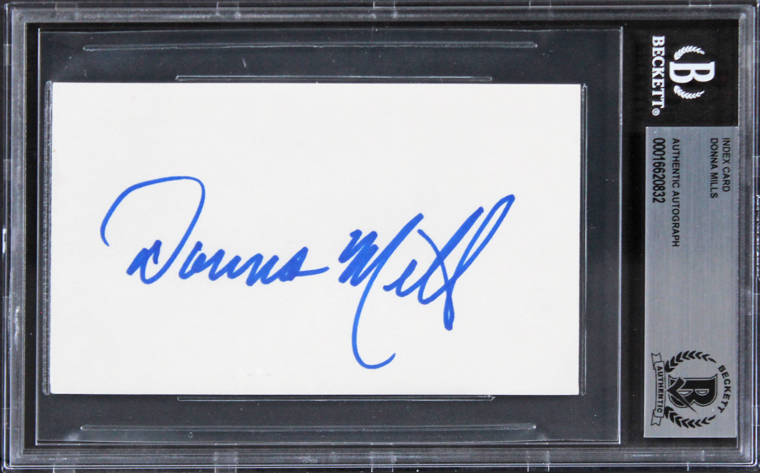Own a piece of television history with this Autographed 3x5 Index Card, personally signed by Donna Mills, the iconic actress from Knots Landing. A must-have for collectors and fans of classic TV, this rare signed item is 100% authentic and comes professionally slabbed and authenticated by Beckett Authentication Services.