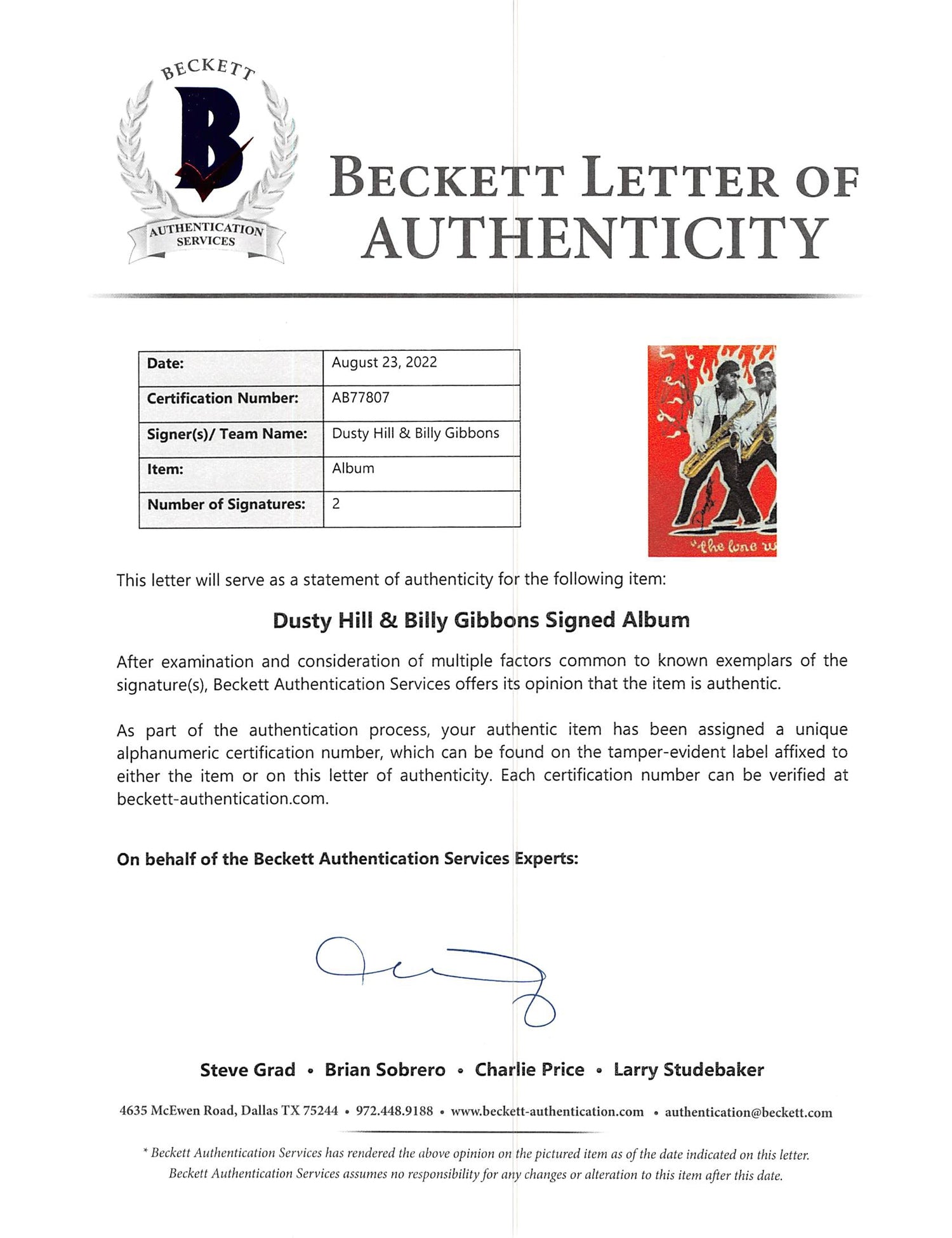 Dusty Hill & Billy Gibbons ZZ Top Authentic Signed Album Cover BAS #AB77807