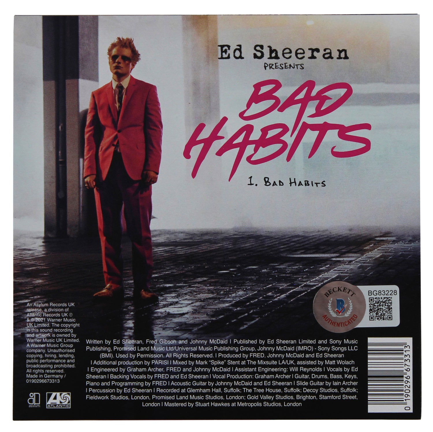 Own a piece of music history with this Autographed "Bad Habits" CD Insert with Disk, personally signed by Ed Sheeran. A must-have for fans and collectors, this rare memorabilia is 100% authentic, verified by Beckett Authentication Services (BAS).