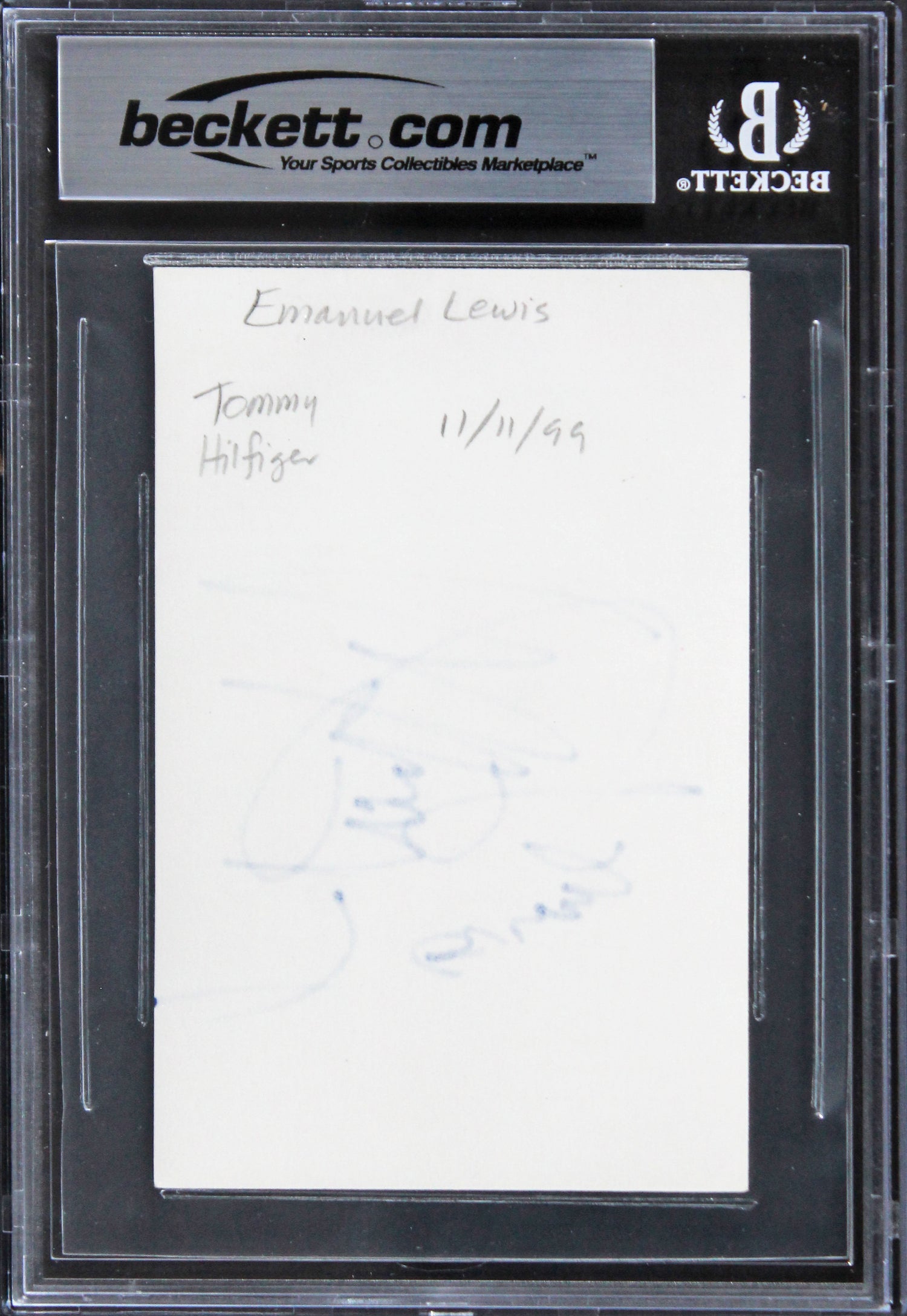 Own a unique piece of television history with this Emmanuel Lewis Autographed 3x5 Index Card, personally signed by the beloved star of *Webster*. This rare collectible is a must-have for fans of classic ’80s sitcoms and pop culture memorabilia. Authenticated and encapsulated by Beckett Authentication Services (BAS), ensuring its 100% authenticity.