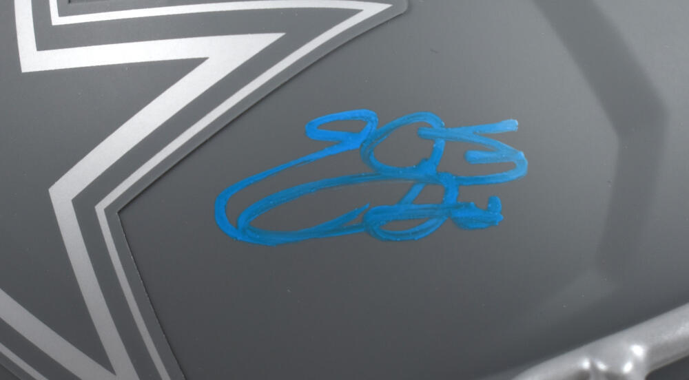 Own a piece of NFL history with this Emmitt Smith autographed Dallas Cowboys Slate Riddell Speed Authentic full-size helmet. A must-have for dedicated Cowboys fans and memorabilia collectors, this helmet celebrates the legacy of one of football’s all-time greats.